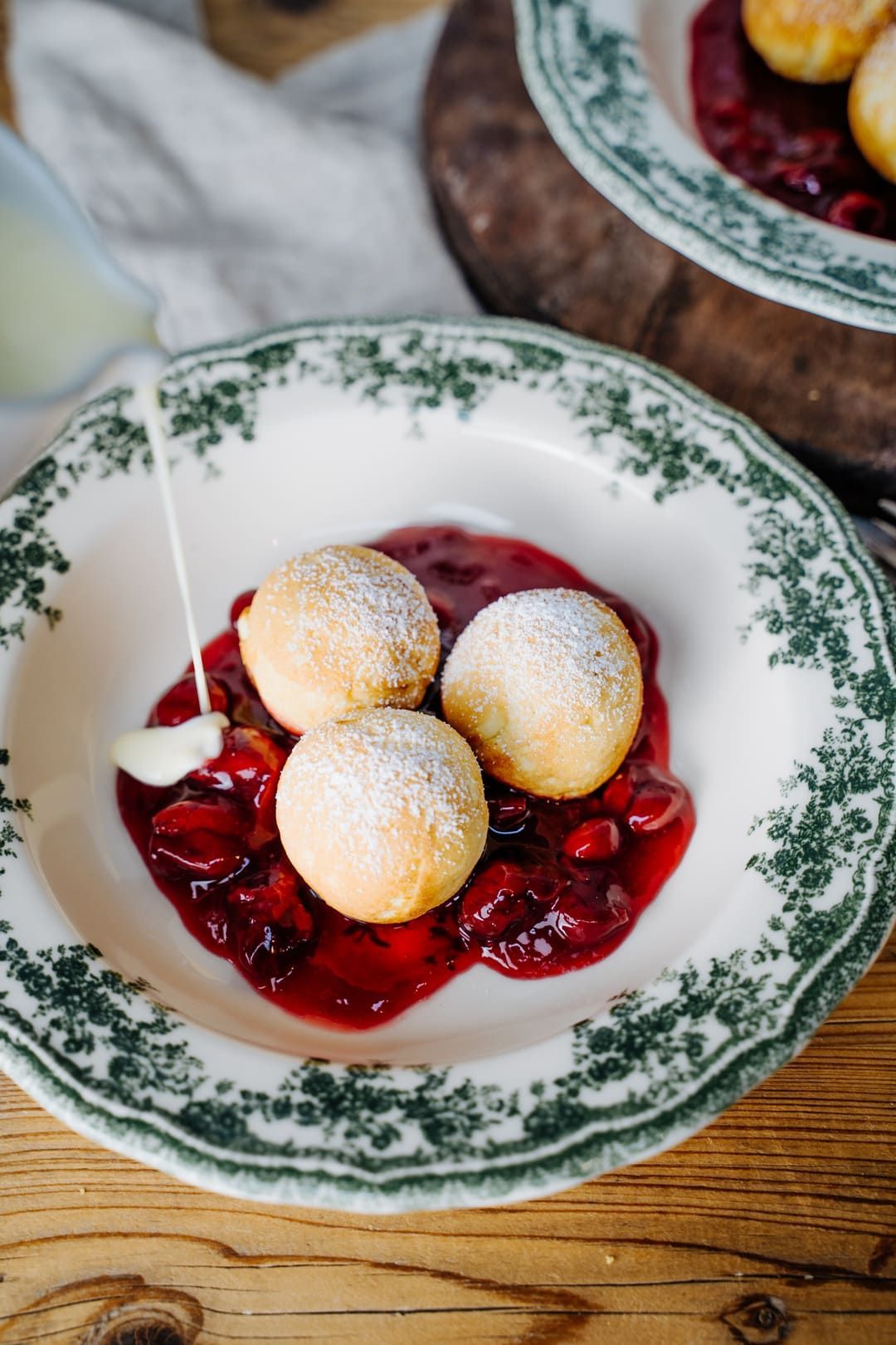 Diese kleinen fluffigen Bällchen sind wirklich unglaublich lecker. Passend dazu gab es etwas Vanillesoße und Kirschkompott. Zusammen mit einer Tasse Tee die perfekte Kombination für die kalte Jahreszeit.