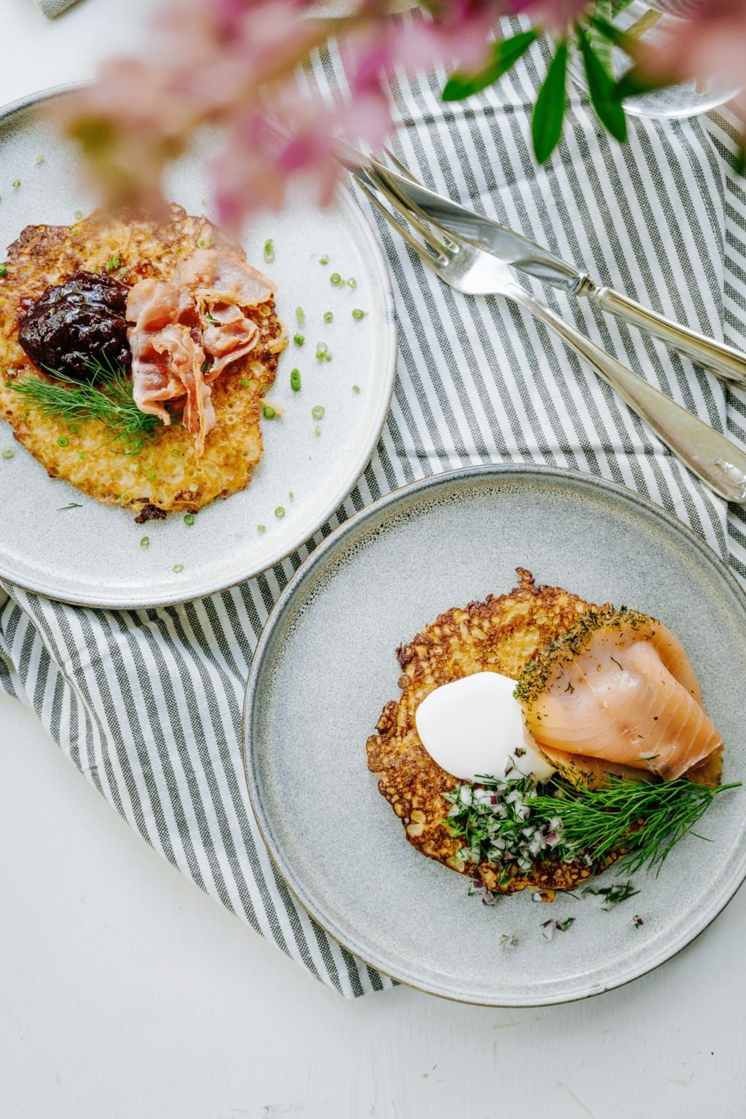 Raggmunk gehört zu den traditionellen Hausmannskost-Gerichten. Klassisch mit Preiselbeeren und gebratenem Speck oder natürlich mit etwas saurer Sahne und Graved Lachs.